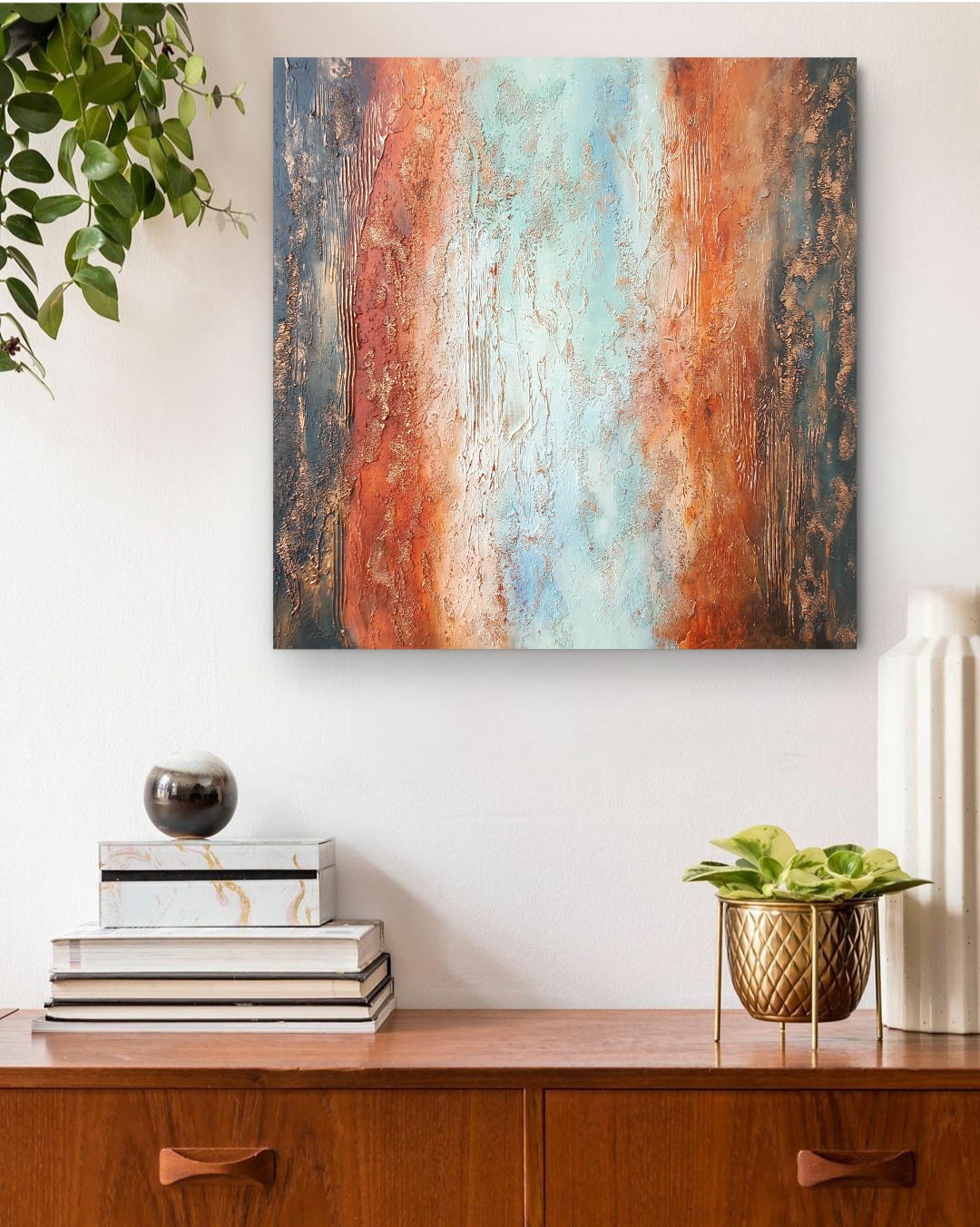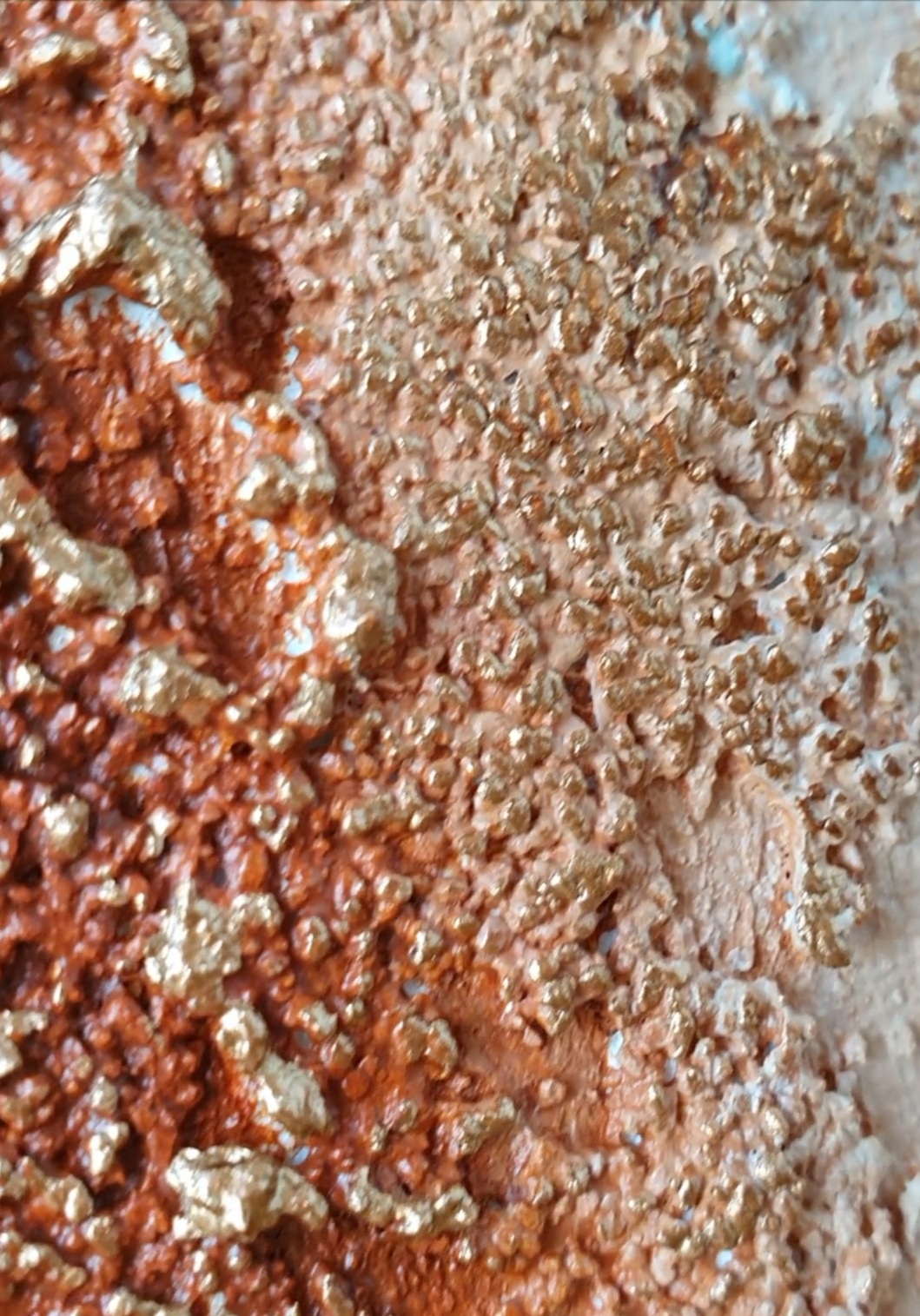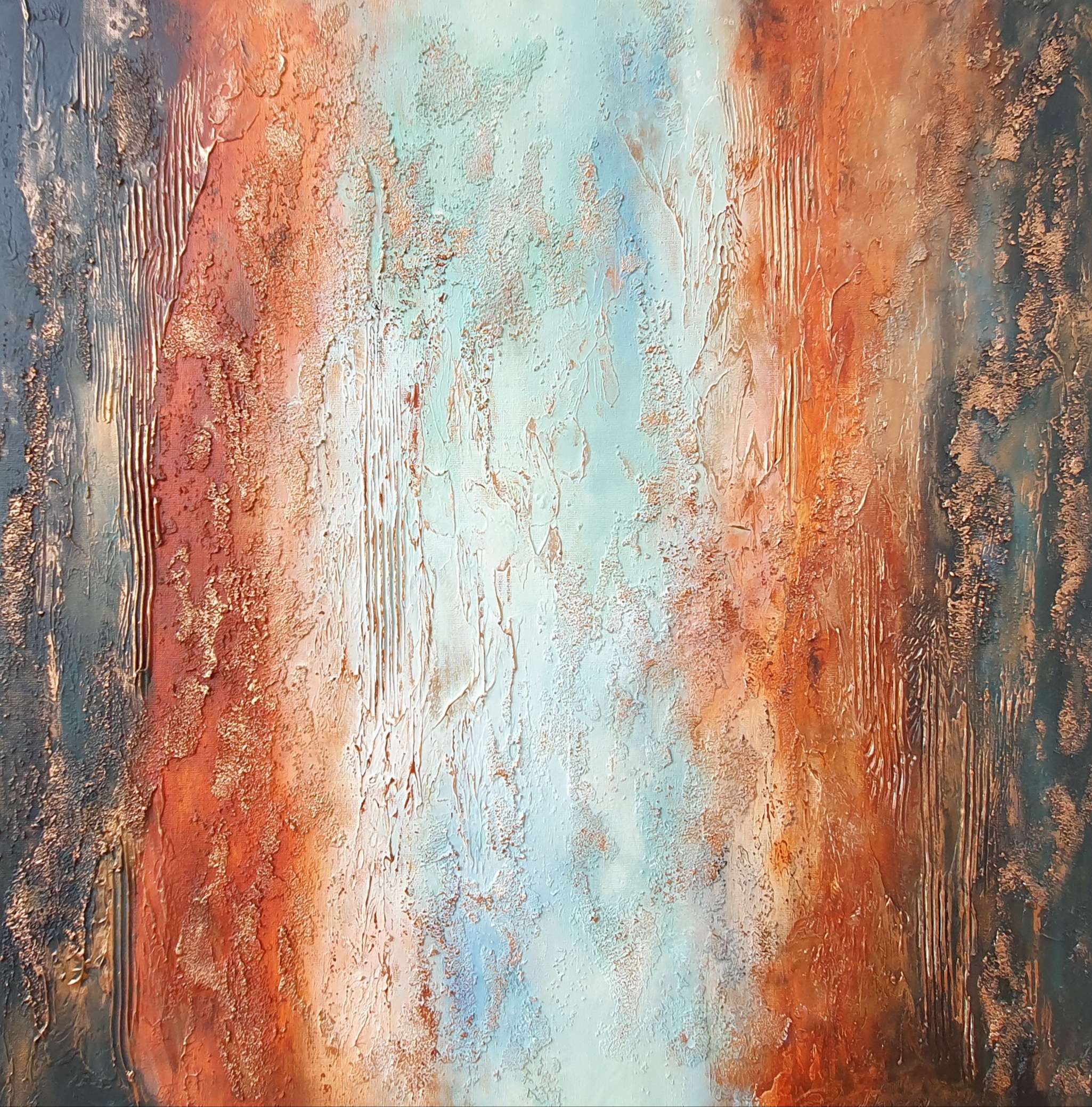 V obrazu jsem využila silnou strukturu. Mám velmi rádá použitou kombinaci barev, která spolu se zlatou dává obrázku šmrnc a eleganci.