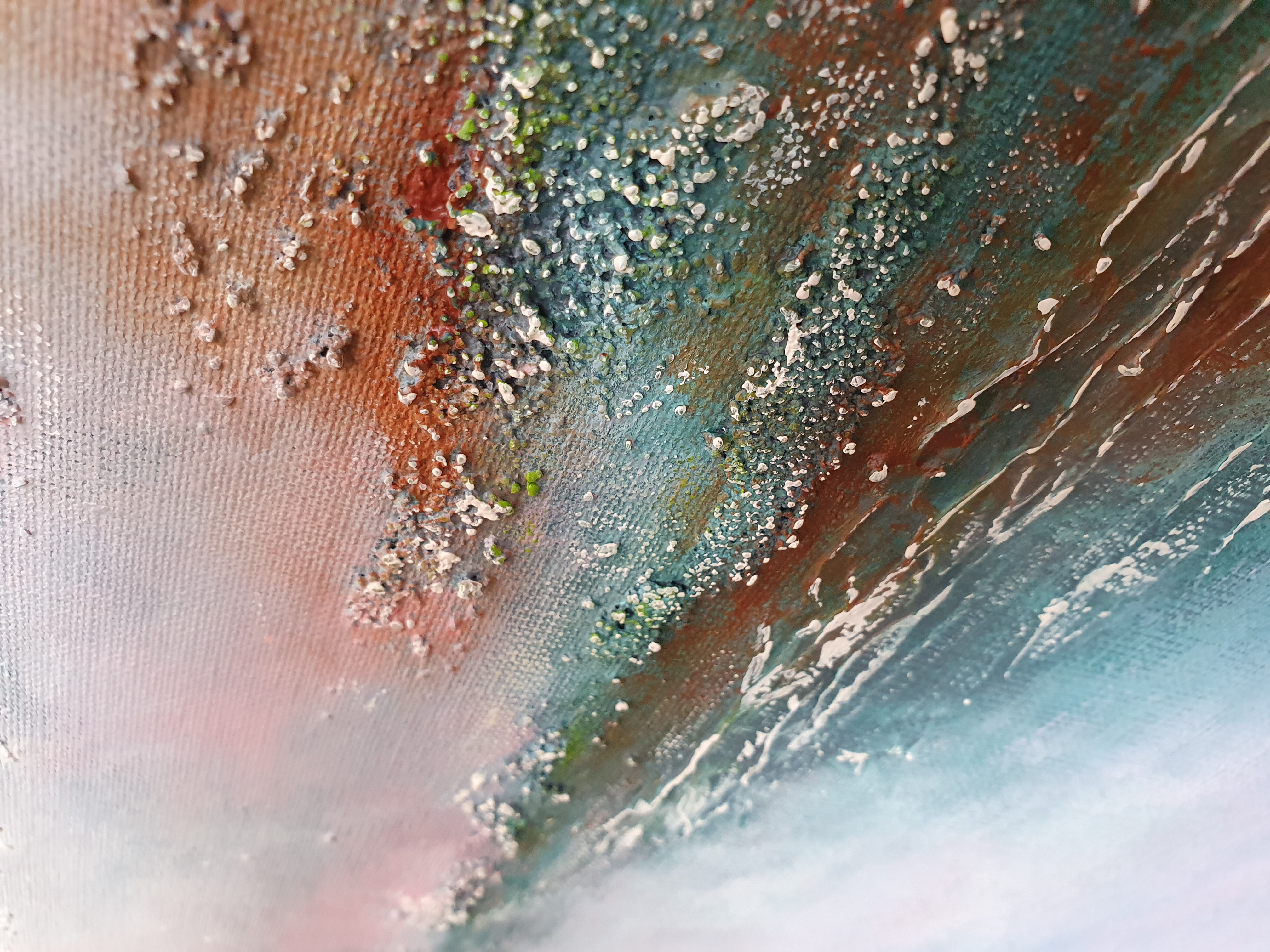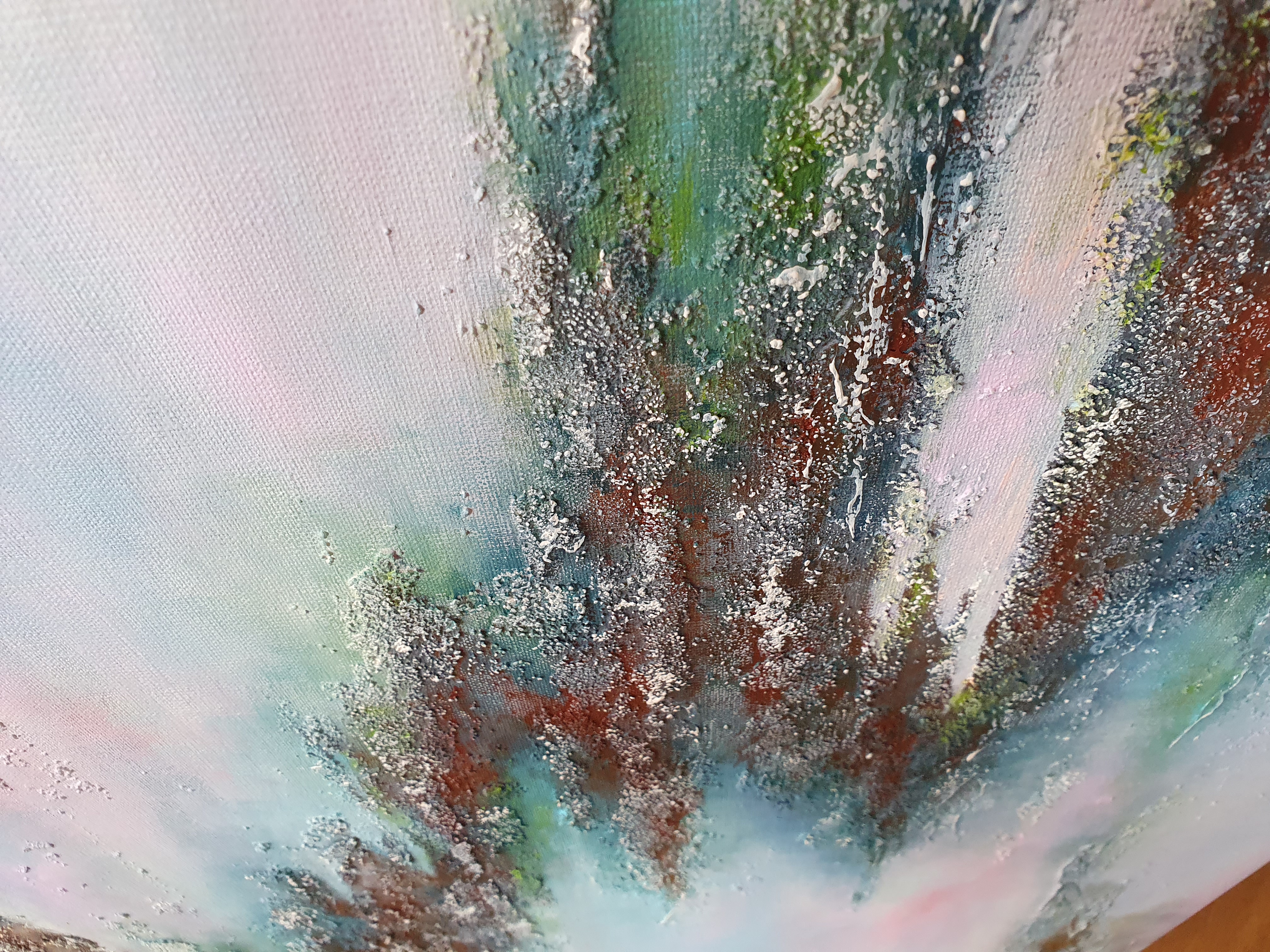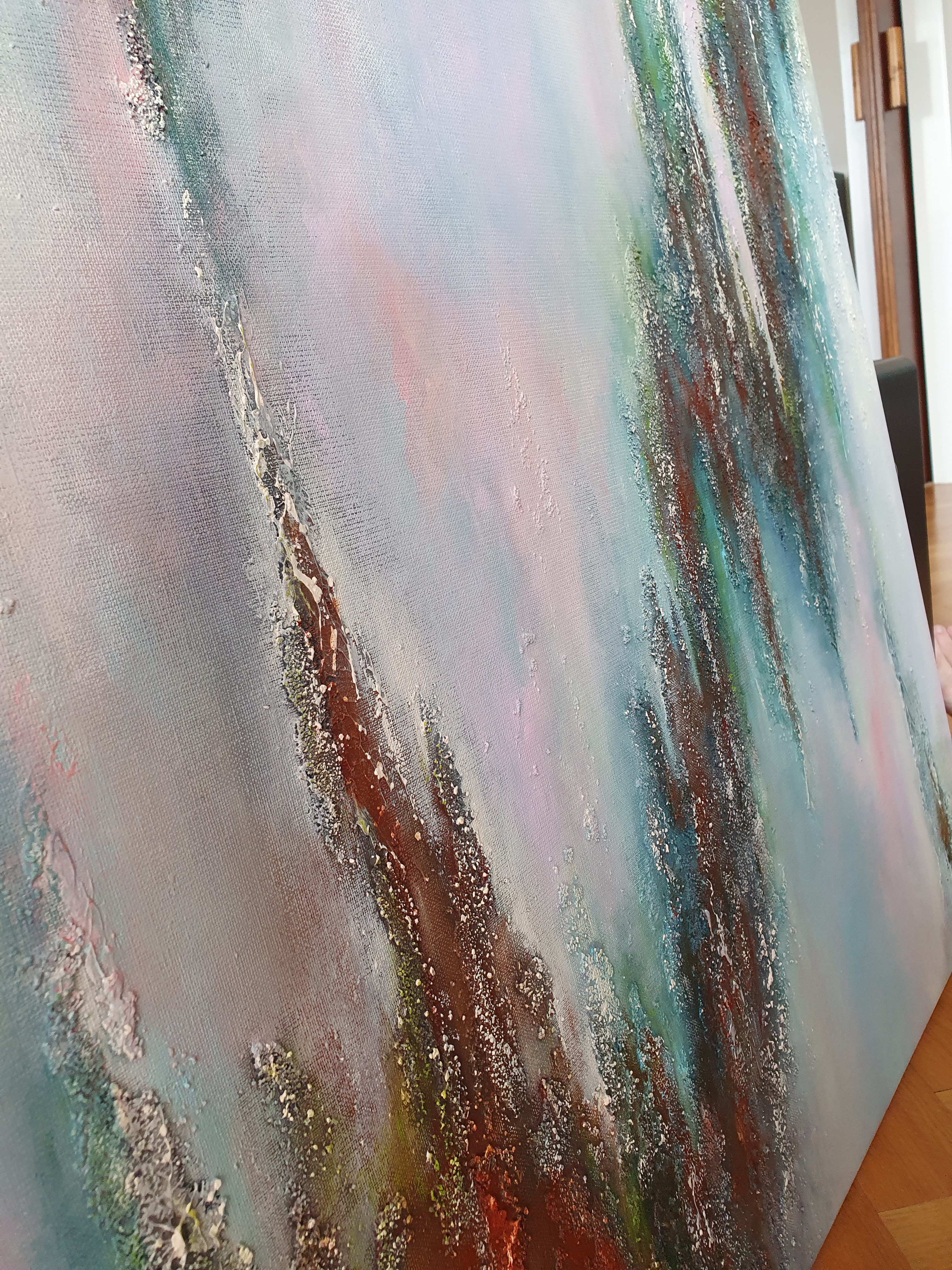 You can always look at the same thing from a diferent perspective. It is the same with this painting. Upside down, left right, always different feeling. Think pink 🙂
