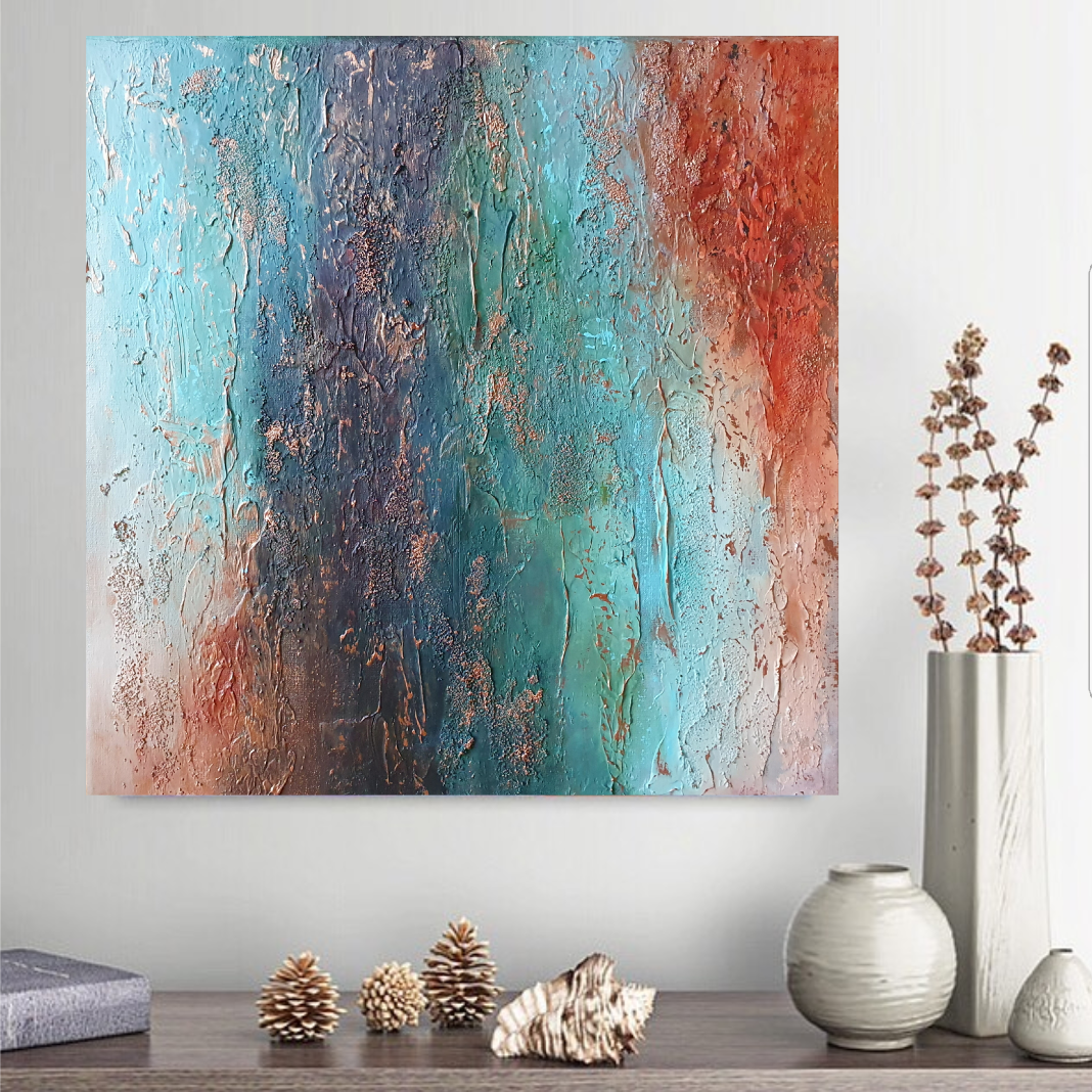 This painting is inspired by nature. Blue color has a power to manage stress. That is probably why I use the color very much in my paintings 🙂 Some of my friends who saw the painting call it a Treasure on canvas. Was she right? I leave a space for your imagination.