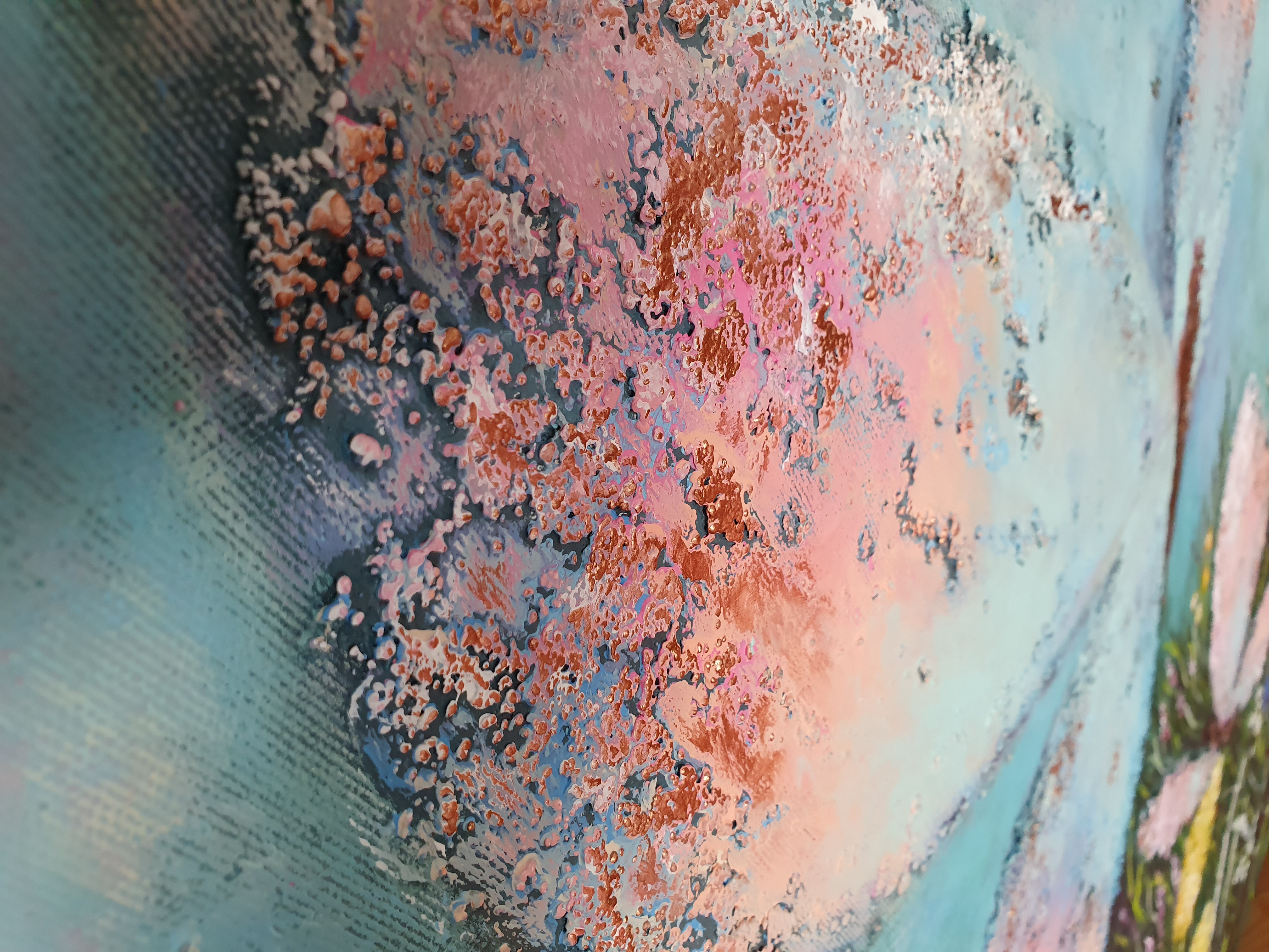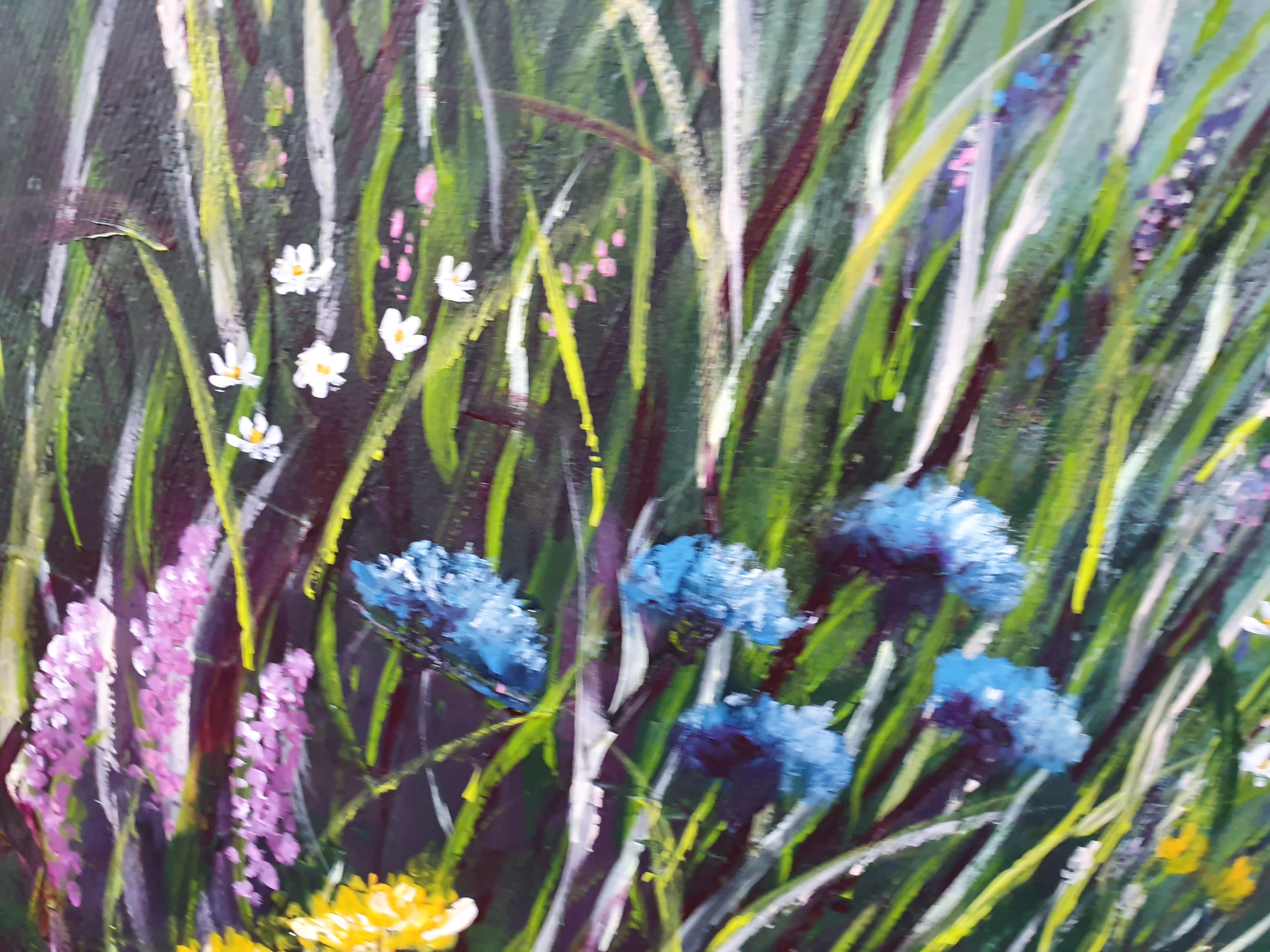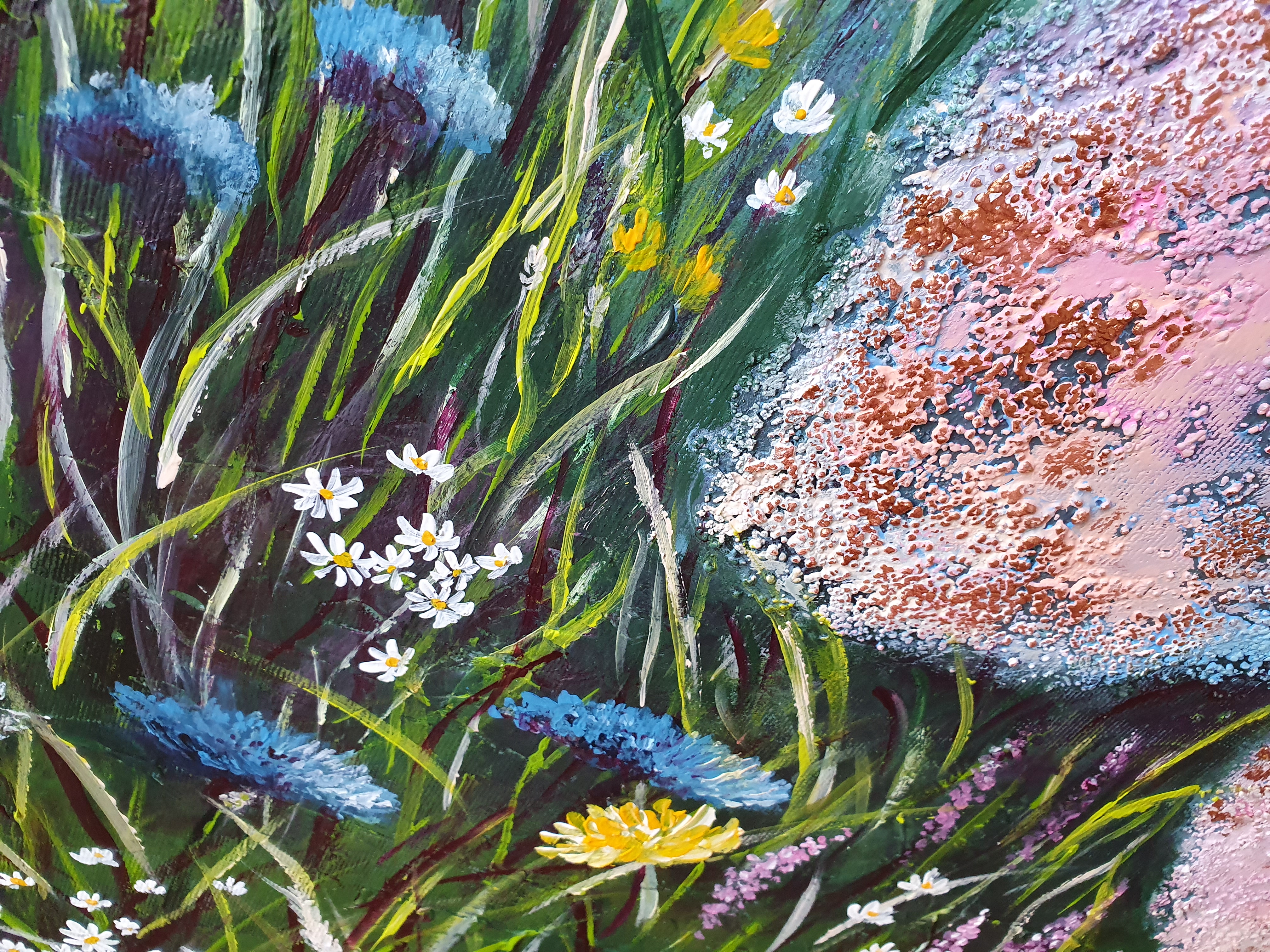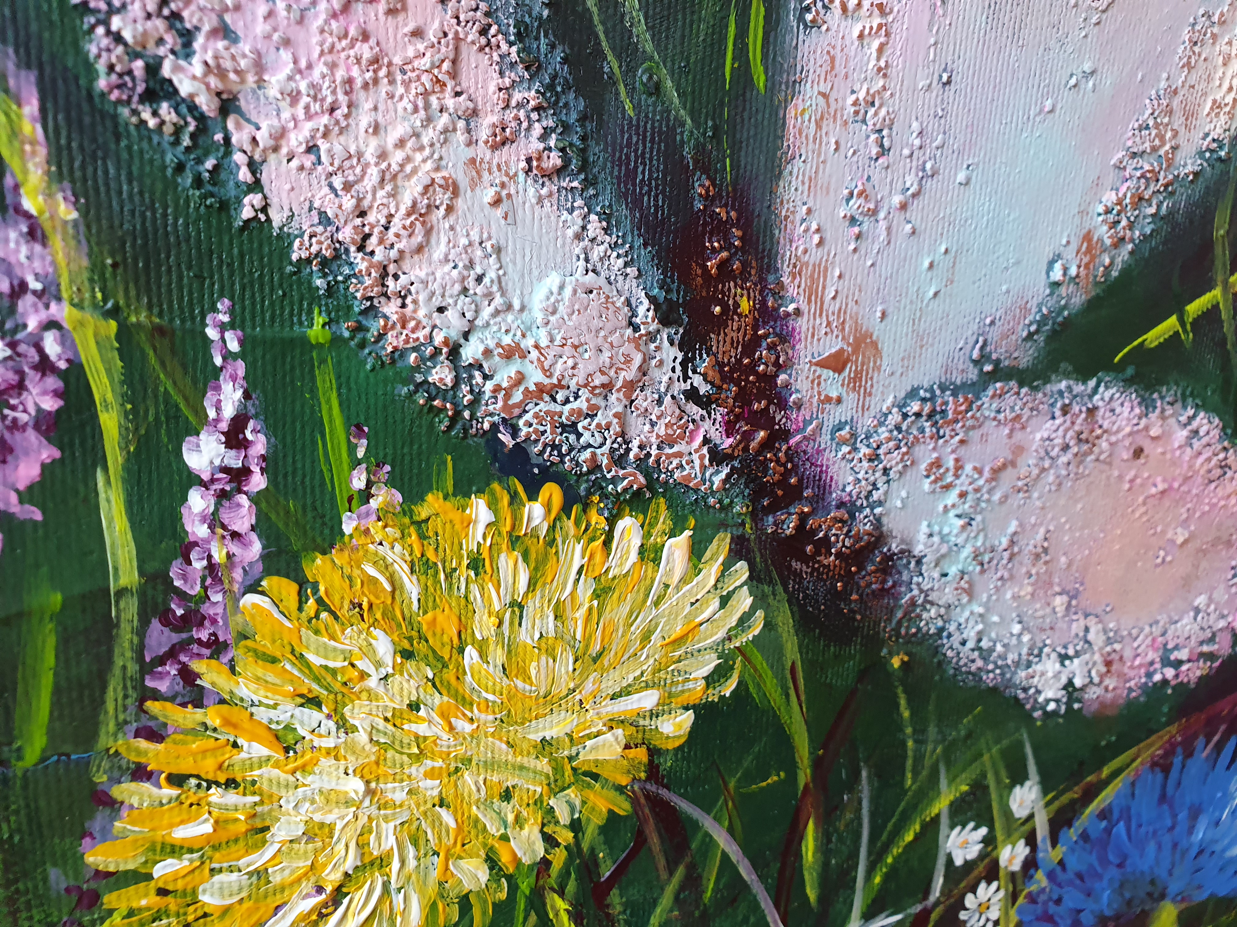 This painting is inspired by summer, sunshine, butterflies and an amazing meadow next to our cottage. I remember spending hours picking wild strawberries and blueberries on this beautiful meadow. The smell of grass and flowers and the sound of all the meadow insects is unforgettable. This is pure nature.